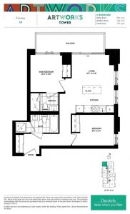 楼花转让:Toronto-ArtWorks Condos-2室2卫/一个停车位和一个储藏室-70万